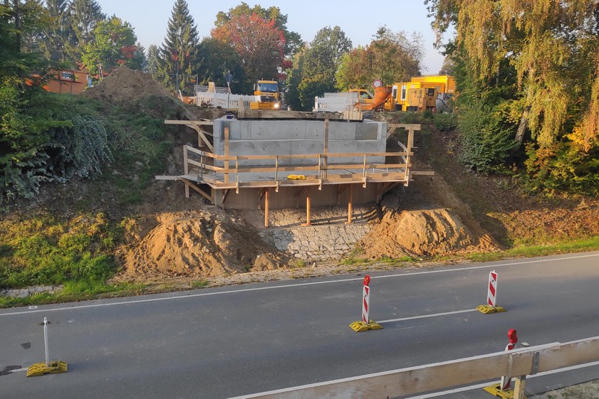 "Die Maßnahme ist wegen eines Anfahr-Schadens erforderlich", heißt es zum Hintergrund der Verkehrs-Behinderungen. Im vorigen Jahr hatte ein – mit einem Bagger beladener – Tieflader den Überbau der Brücke der Gemeindeverbindungsstraße über die Bundesstraße B299 beschädigt. Aufgrund von Sofortmaßnahmen – Tonnage-Beschränkung und Verengung der Fahrspuren – habe zwar keine Gefahr für die Verkehrsteilnehmer bestanden, jedoch müsse der Überbau erneuert werden.