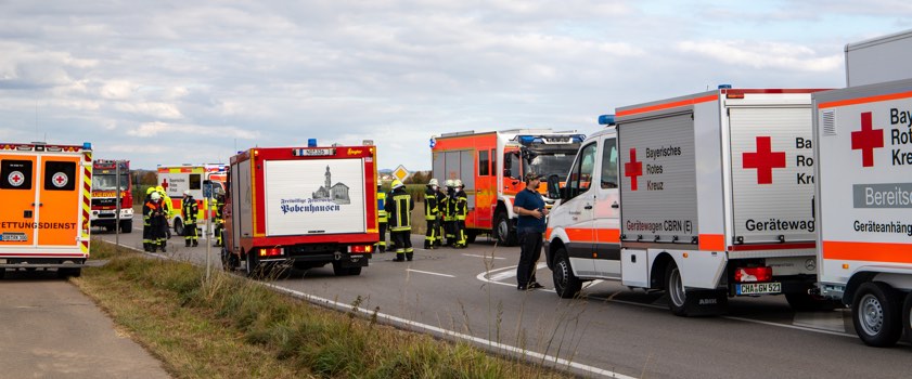 (ty) Vier Verletzte hat ein Verkehrsunfall gefordert, der sich am heutigen Nachmittag im Gemeinde-Bereich von Karlskron ereignet hat. Das Unglück geschah gegen 15 Uhr auf der Staatsstraße 2048 bei Pobenhausen. Offenbar missachtete eine 20-jährige Pkw-Lenkerin beim Links-Abbiegen die Vorfahrt eines Autos, in dem ein Ehepaar mit ihrem kleinen Kind unterwegs war. Alle vier Personen wurden vom Rettungsdienst in Krankenhäuser gebracht. An den beiden Wagen entstand jeweils Totalschaden; die Staatsstraße war zeitweise komplett gesperrt.