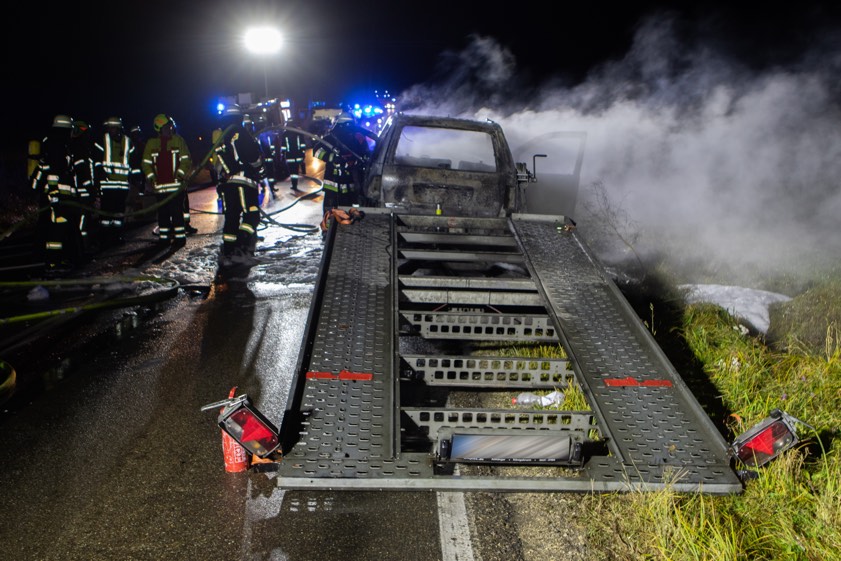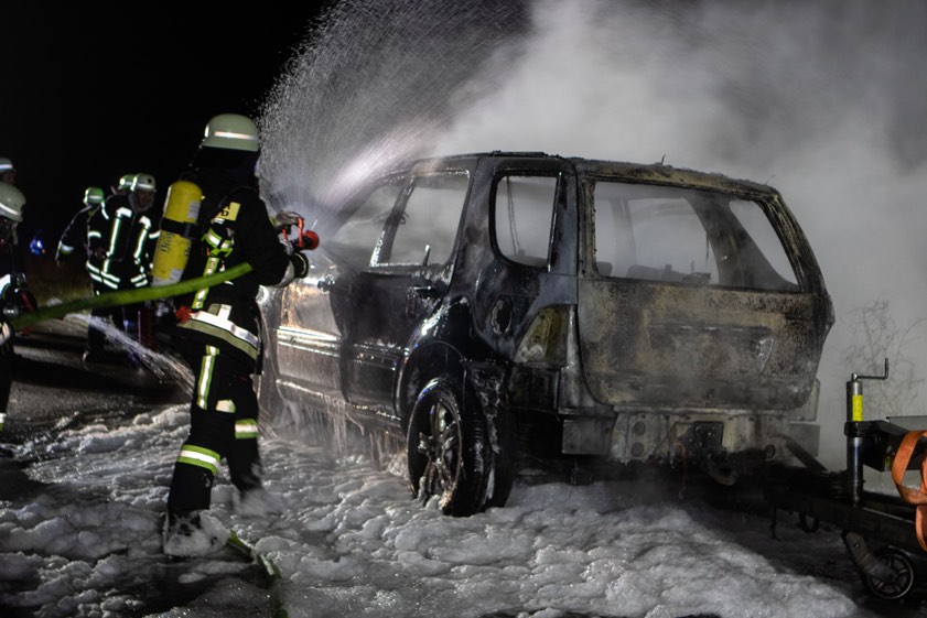 (ty) In der Nähe von Brunnen im Nachbar-Landkreis Neuburg-Schrobenhausen ist am gestrigen Abend ein Mercedes zum Raub der Flammen geworden. Zu dem Zwischenfall kam es laut heutiger Mitteilung der Schrobenhausener Polizeiinspektion gegen 19 Uhr, als ein 34-Jähriger aus dem Raum Augsburg mit seinem Pkw samt beladenem Anhänger auf der Staatsstraße 2044 – von Karlskron her kommend – in Richtung Schrobenhausen unterwegs war. Vermutlich wegen eines technischen Defekts sei das von dem Mann gesteuerte Auto in Brand geraten.