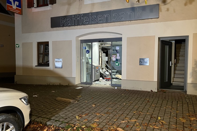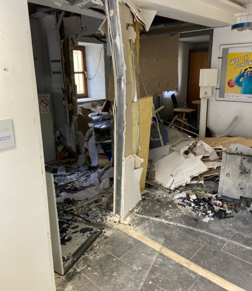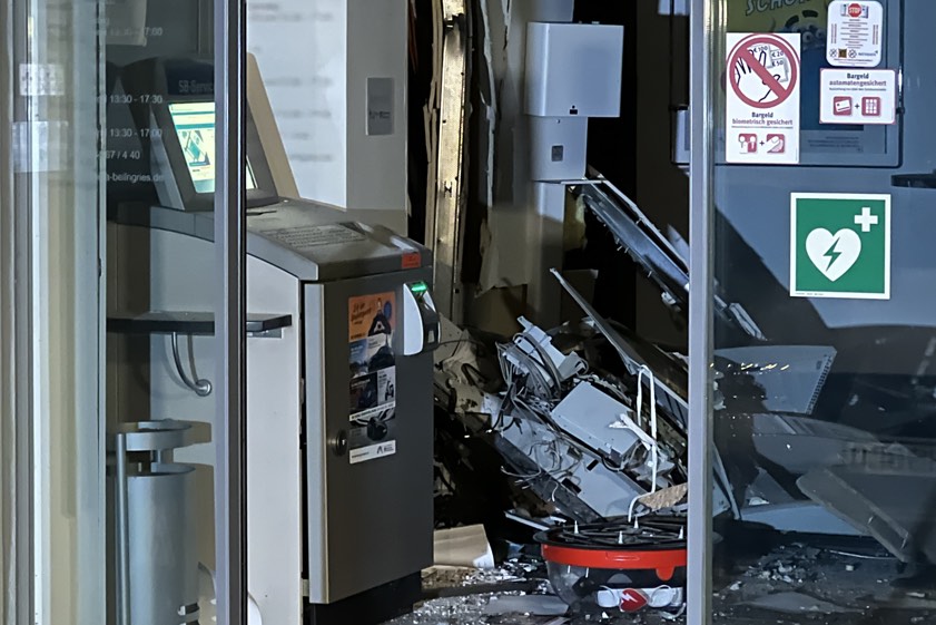 Bei der Detonation heute gegen 2.50 Uhr entstand massiver Schaden. Täter flüchteten mit Beute in dunklem Auto. LKA bittet um Hinweise.