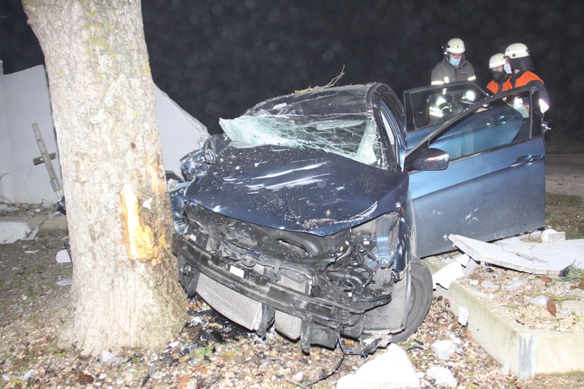 (ty) Zwei Schwerverletzte hat ein heftiger Verkehrsunfall gefordert, der sich am heutigen Morgen im Gemeinde-Bereich von Buxheim im Landkreis Eichstätt ereignet hat. Ein alkoholisierter 18-Jähriger verlor die Kontrolle über seinen Pkw, der Wagen krachte durch eine Gartenmauer und prallte schließlich noch gegen einen Baum. Der Fahranfänger und sein 17-jähriger Beifahrer trugen jeweils schwere Verletzungen davon. Laut Polizei hatte der Unfall-Fahrer fast ein Promille intus.