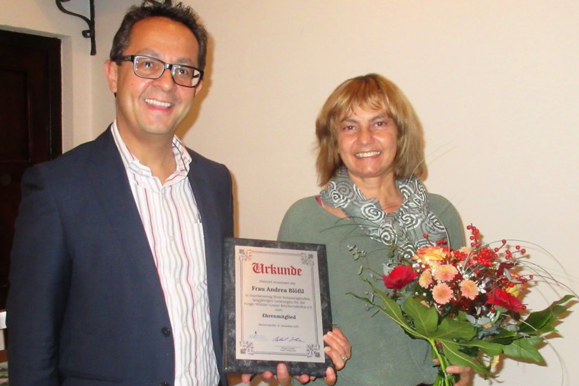 Ein Höhepunkt der Versammlung war die Ernennung von Andrea Blößl zum derzeit einzigen Ehrenmitglied. Gewürdigt wurde damit ihr Engagement: seit 1989 Schriftführerin im JWU-Vorstand, von 1996 bis 2020 JWU-Gemeinderätin, Kandidatin bei sechs Kommunalwahlen, Redaktions-Mitglied beim Infoblatt "Pfiff", (Mit-)Organisatorin bei Fußball-Turnieren, Info-Ständen, und Wahlkämpfen. Blößl sei nie die Lauteste gewesen, würdigte Franken, aber sie habe genau gewusst, wie und wo sie die entscheidenden Botschaften bei Bürgermeister, Fraktion oder im Gemeinderat habe platzieren müssen. So habe sie bei ihren politischen Schwerpunkt-Themen – Familienpolitik, Ortsgestaltung, Umweltschutz und Verkehrs-Sicherheit – wichtige und richtungsweisende Impulse gesetzt.