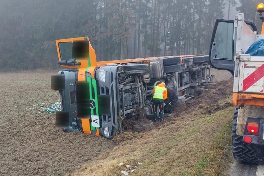 42-Jähriger verlor nach einem Ausweich-Manöver auf der PAF11 zwischen Dürnzhausen und Sünzhausen die Kontrolle über seinen Laster.