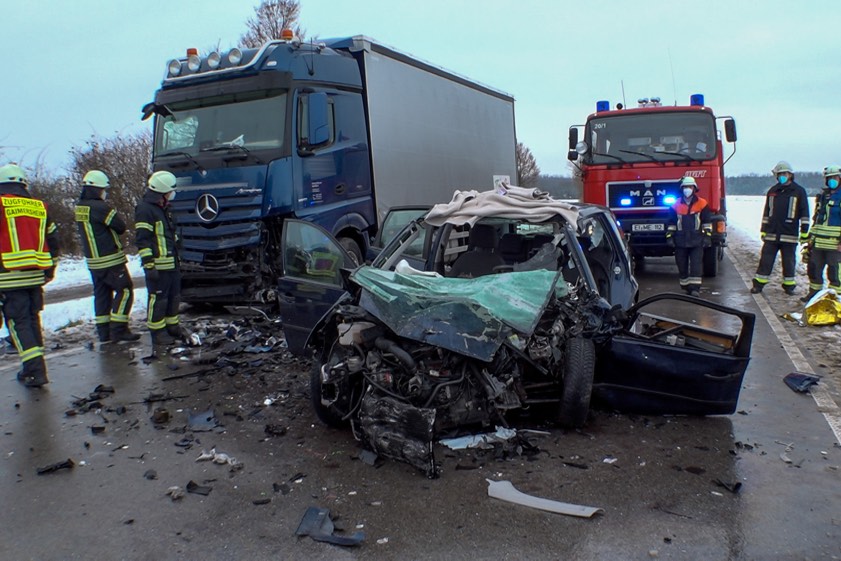 Nach ersten Ermittlungen wollte die Frau mit ihrem Pkw einen Lastwagen überholen und übersah dabei einen entgegenkommenden Lkw.