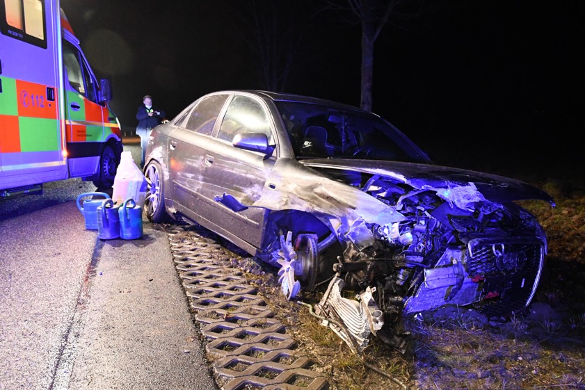 (ty) Ein betrunkener 33-Jähriger hat am gestrigen Abend im Landkreis-Neuburg-Schrobenhausen sein Auto geschrottet und ist jetzt seinen Führerschein los. Der Unfall geschah kurz vor 22 Uhr auf der Staatsstraße 2046. Nach Angaben der Polizei war der Neuburger mit seinem Audi – von Stengelheim her kommend – in Richtung Berg im Gau unterwegs, als der Wagen in einer Links-Kurve vor dem Ortsbeginn zunächst in die rechte Leitplanke krachte. Er schleuderte dann nach links und kam schließlich neben der Straße zum Stehen.