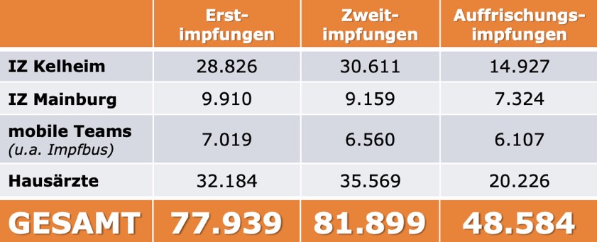 Nachfolgend die jüngsten offiziellen Infos aus dem Landratsamt zu den verabreichten Corona-Impfungen im Kreis Kelheim. Dazu zwei Anmerkungen: 1. Wer den Impfstoff von "Johnson & Johnson" erhalten hat, braucht bekanntlich nur eine Impfung; diese Personen werden in der Statistik nur bei den Zweit-Impfungen geführt. 2. Das Impf-Zentrum in Mainburg war von Ende September bis 20. November geschlossen.