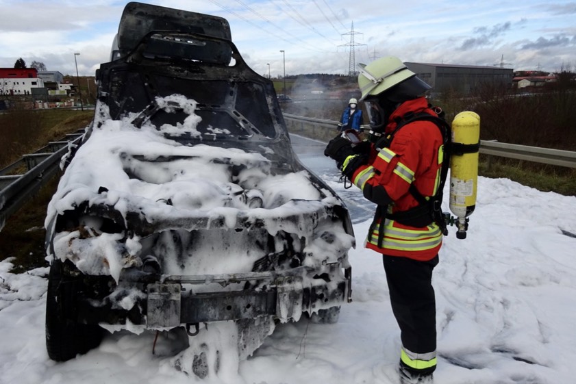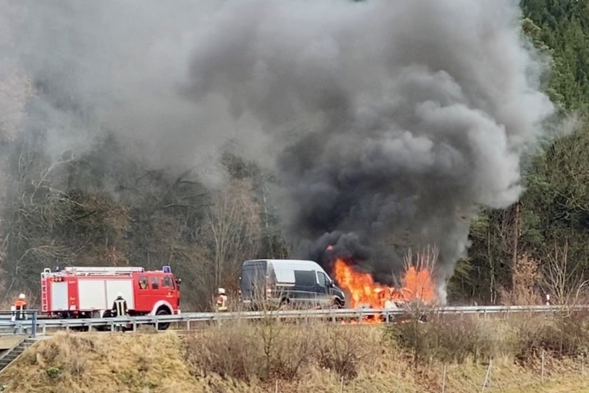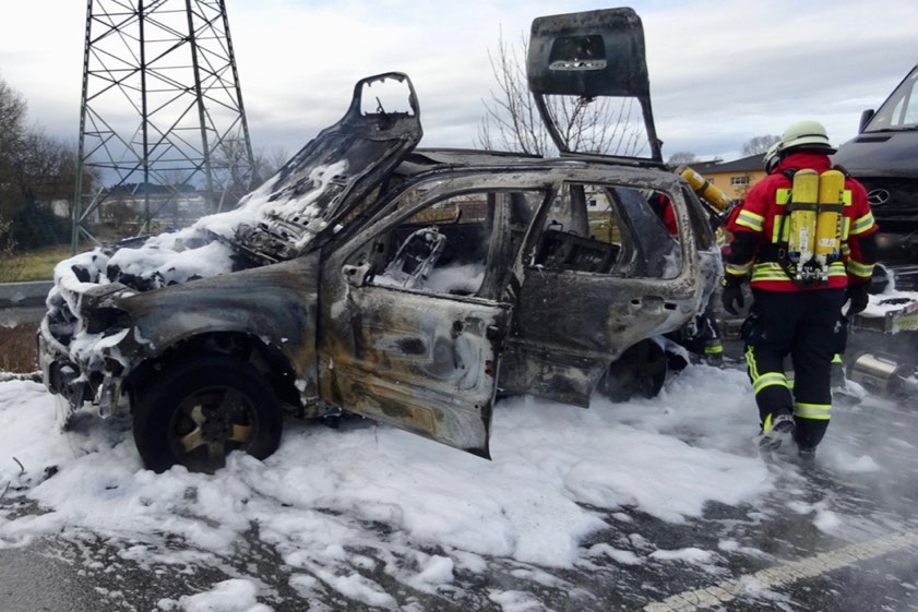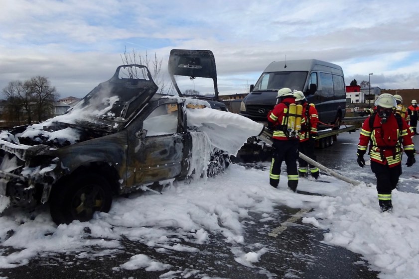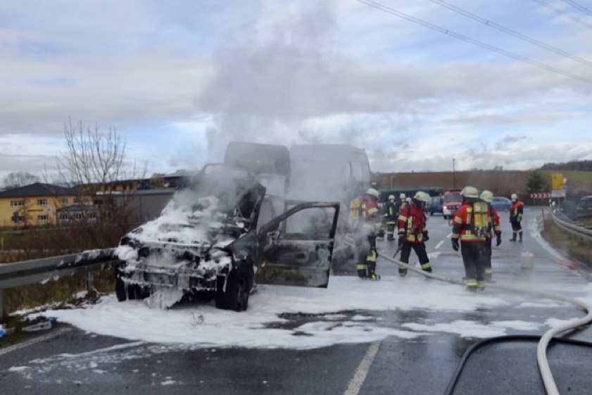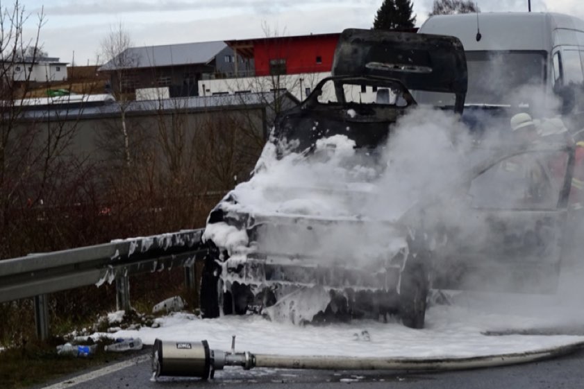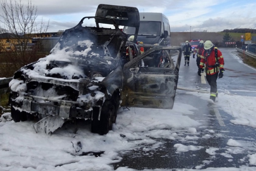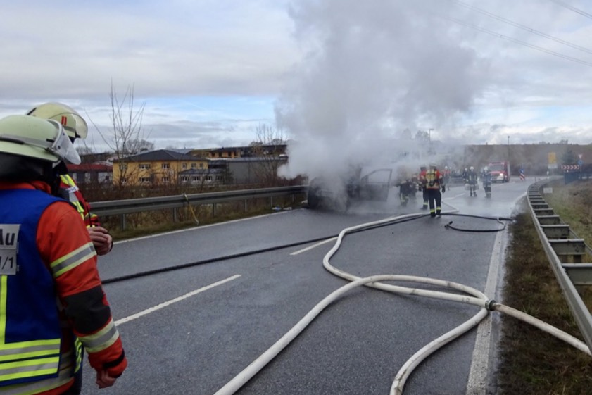 (ty) Zum Raub der Flammen ist am frühen gestrigen Nachmittag ein Pkw auf der Bundesstraße B301 im Gemeinde-Bereich von Au in der Hallertau geworden. Nach Angaben der Polizei brannte der Mercedes komplett aus. Der Transport-Anhänger, den das Auto im Schlepptau hatte, und der darauf befindliche Mercedes-Sprinter sowie auch die Fahrbahn-Decke seien ebenso in Mitleidenschaft gezogen worden. Der Sachschaden wurde nach ersten Erkenntnissen auf insgesamt 10 000 Euro geschätzt. Verletzt worden sei bei dem Zwischenfall niemand niemand.