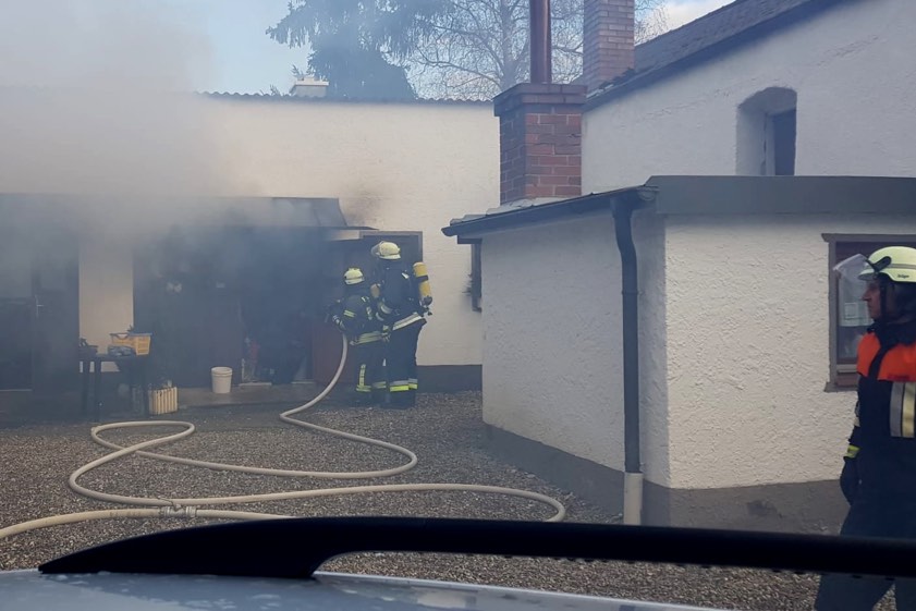 In einem Nebengebäude geriet ein Wohnzimmer in Flammen. Ursache war offenbar ein alter Holzofen. Verletzt wurde niemand.