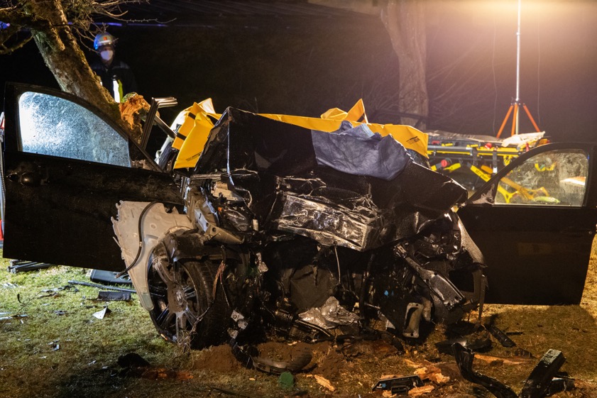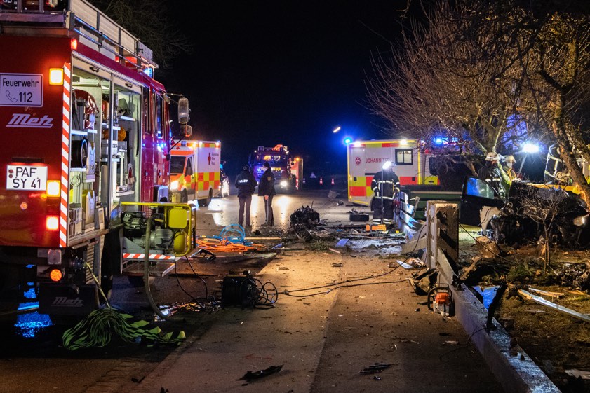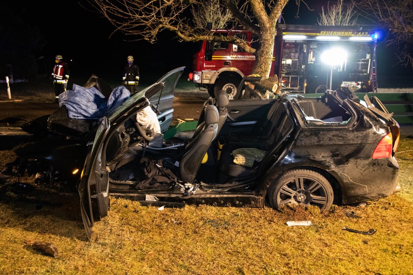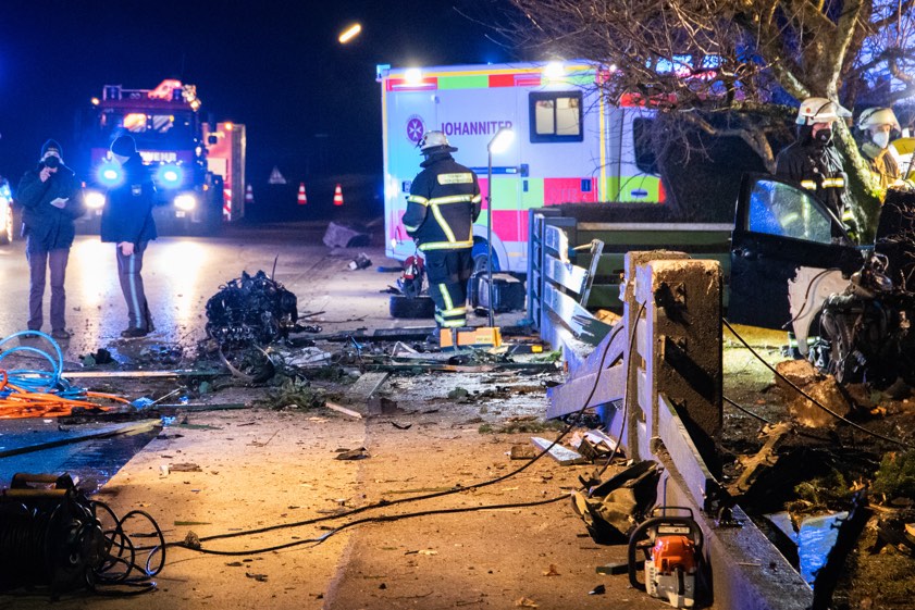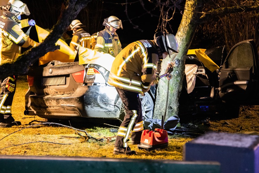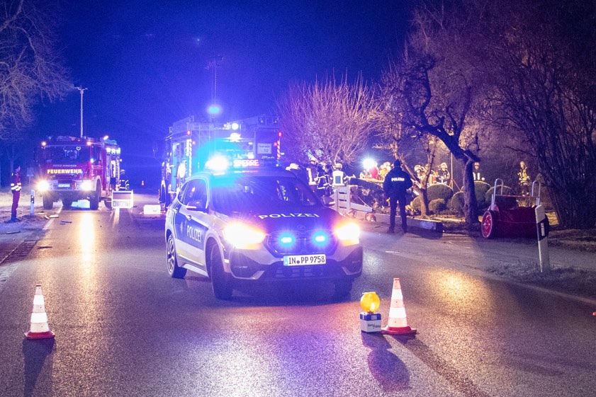 Pkw kam heute Nacht in einer leichten Kurve von der Staatsstraße ab und krachte gegen einen Beton-Sockel. Die Verunglückten stammen aus Gerolsbach und Aresing.