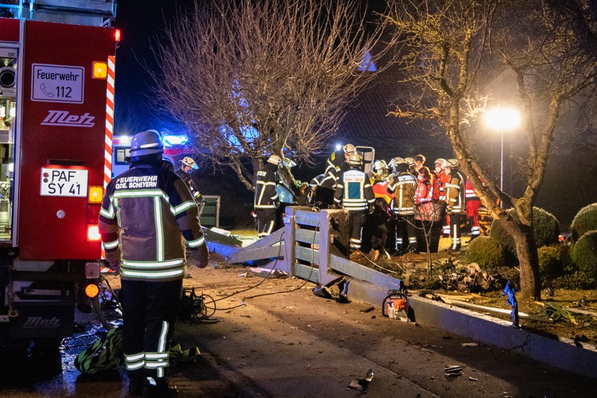 Durch die Wucht des Aufpralls sei dieser Beton-Sockel aus dem Fundament gerissen und in das Anwesen eines 54-Jährigen Anwohners geschleudert worden. Dort sei weiterer Sachschaden an der Hof-Einfahrt entstanden. Der 19-jährige Pkw-Fahrer habe schwere Verletzungen erlitten. Er habe von den Feuerwehrleuten aus Pfaffenhofen und Scheyern aus dem total beschädigten Auto befreit werden müssen. Nach der Erstversorgung vor Ort durch den Rettungsdienst sei er – unter anderem mit Verdacht auf eine Wirbelsäulen-Verletzung – per Rettungs-Hubschrauber ins Klinikum nach Ingolstadt geflogen worden.