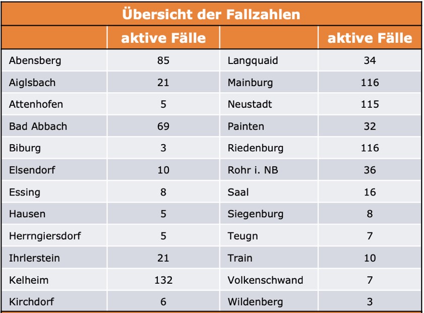 Das Landratsamt weist darauf hin, dass einige der veröffentlichten Kennzahlen zur Corona-Lage im Kreis Kelheim wegen Überlastung des Gesundheitsamts aktuell als ungenau angesehen werden müssen; lesen Sie dazu auch einen ausführlichen Bericht: Corona: Das Kelheimer Gesundheitsamt kommt mit der Arbeit nicht mehr nach