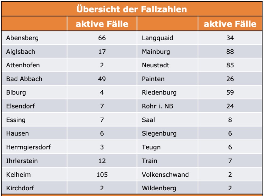 Das Landratsamt weist darauf hin, dass einige der veröffentlichten Kennzahlen zur Corona-Lage im Kreis Kelheim wegen Überlastung des Gesundheitsamts aktuell als ungenau angesehen werden müssen; lesen Sie dazu auch einen ausführlichen Bericht: Corona: Das Kelheimer Gesundheitsamt kommt mit der Arbeit nicht mehr nach