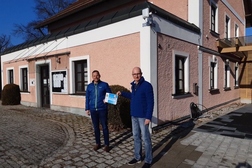 (ty) Kostenloses WLAN in Jetzendorf: Bürgermeister Manfred Betzin (Foto oben, links) und Gemeinde-Kämmerer Klaus Burgstaller (rechts) haben den "BayernWLAN"-Zugang wieder in Betrieb genommen. Im Zusammenhang mit dem Neubau des Rathauses war das alte Postgebäude abgerissen und der Free-Wifi-Zugang deaktiviert worden. "Gemeinsam mit dem Bayerischen WLAN-Zentrum Straubing und der Elektrofirma Karl Müller wurde nun eine neue Außen-Antenne aktiviert, mit welcher der Bereich vor dem alten und neuen Rathaus mit einem kostenfreien Internet-Zugang versorgt wird", teilte die Gemeine-Verwaltung jetzt mit.