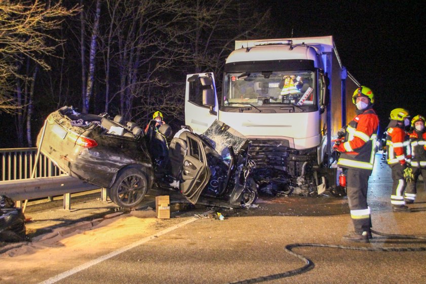 28-Jähriger krachte mit seinem Mercedes erst rechts in die Leitplanke und kollidierte dann mit einem entgegenkommenden Sattelzug.