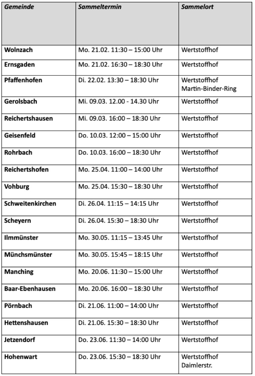 Problem-Abfall-Sammlungen im ersten Halbjahr 2022 im Kreis Pfaffenhofen: