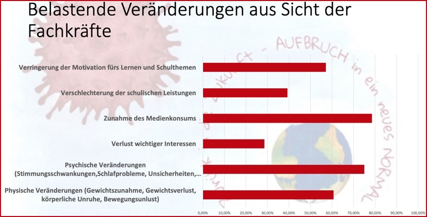 "Mit der Online-Umfrage wollten die Veranstalter einen Eindruck davon bekommen, wie Eltern und Fachkräfte die Situation ihrer Kinder einschätzen", erklärt die Kreis-Behörde. "Dabei konnten sie über positive aber auch belastende Veränderungen während der Pandemie berichten." Auch wenn die Zahl der Umfrage-Teilnehmer keine repräsentativen Rückschlüsse zulasse, haben sich die fast 100 Erwachsenen den Angaben zufolge ganz ähnlich geäußert wie die Teilnehmer der bundesweiten Copsy-Studie (Studie zu Corona und Psyche am Universitäts-Klinikum Hamburg-Eppendorf).
