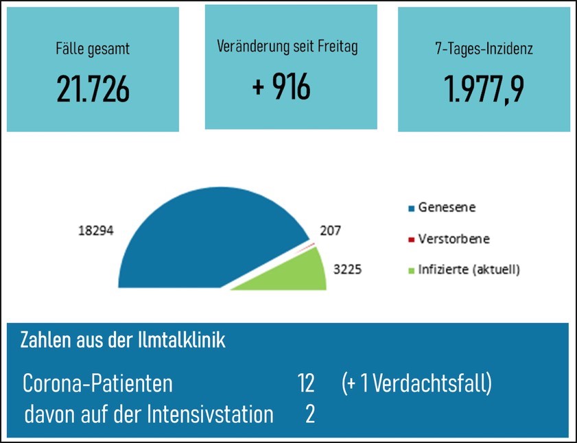 Bislang 21.726 Infektionen: 207 Betroffene gestorben, 3225 aktive Fälle, Sieben-Tage-Inzidenz: 1977,9. Die Lage und die aktuellen Regeln im Überblick.