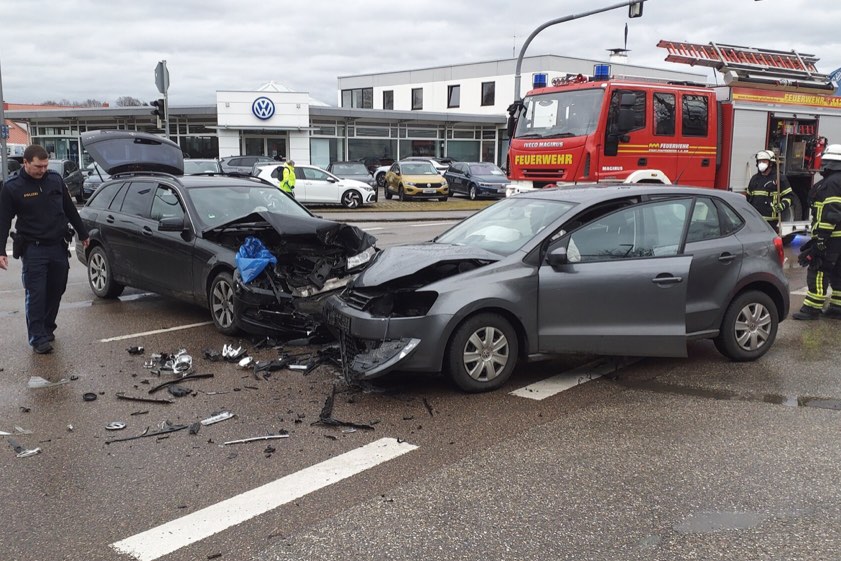 (ty) Ein schwerer Verkehrsunfall hat sich am gestrigen Nachmittag im Stadtgebiet von Pfaffenhofen an der Panorama-Kreuzung ereignet, wo die durchgehende Joseph-Fraunhofer-Straße (B13) sowie die Raiffeisenstraße und die Straße "Altenstadt" zusammentreffen. Gegen 14.50 Uhr krachten zwei Autos frontal zusammen. Die zwei Pkw-Lenkerinnen (18 und 59) sowie ein 13-jähriger Bub und eine 89 Jahre alte Frau wurden ins Krankenhaus gebracht. An beiden Wagen entstand Totalschaden. Die Polizei bittet um Zeugen-Hinweise, insbesondere bezüglich der Ampel-Schaltung.
