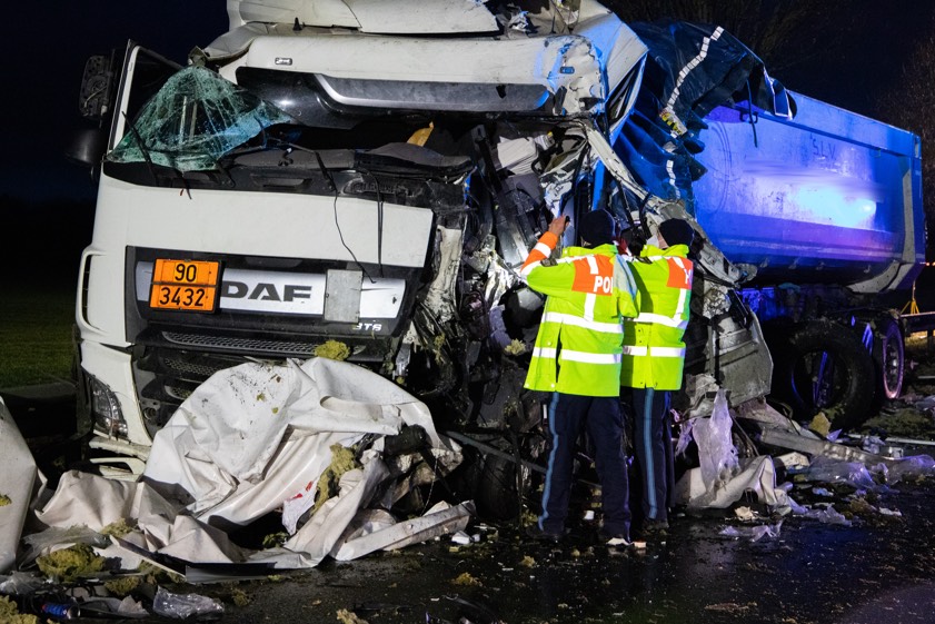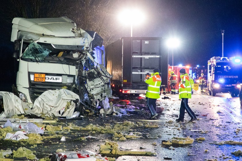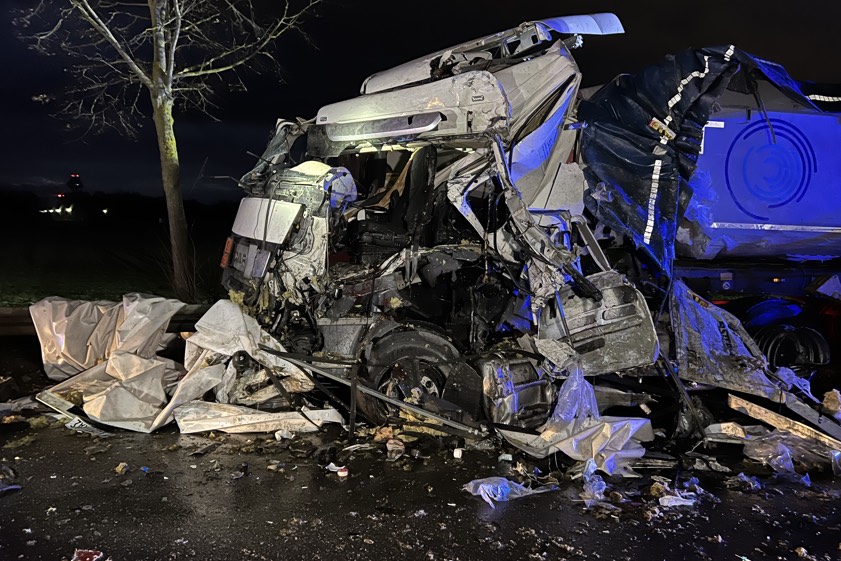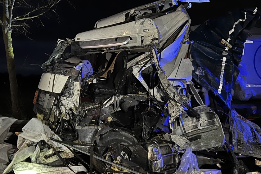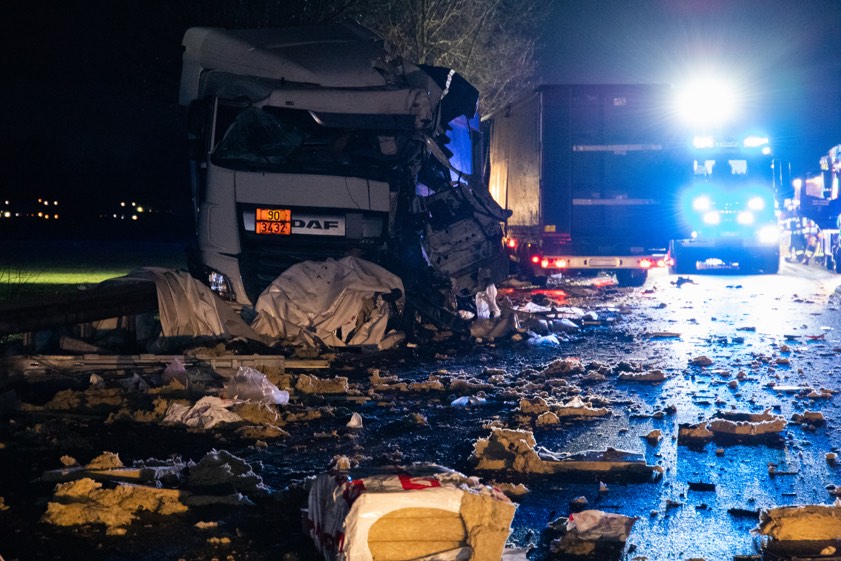 Lkw-Gespann geriet heute Morgen auf die Gegenspur, streifte einen entgegenkommenden Sattelzug und kollidierte dann frontal mit einem weiteren Laster.