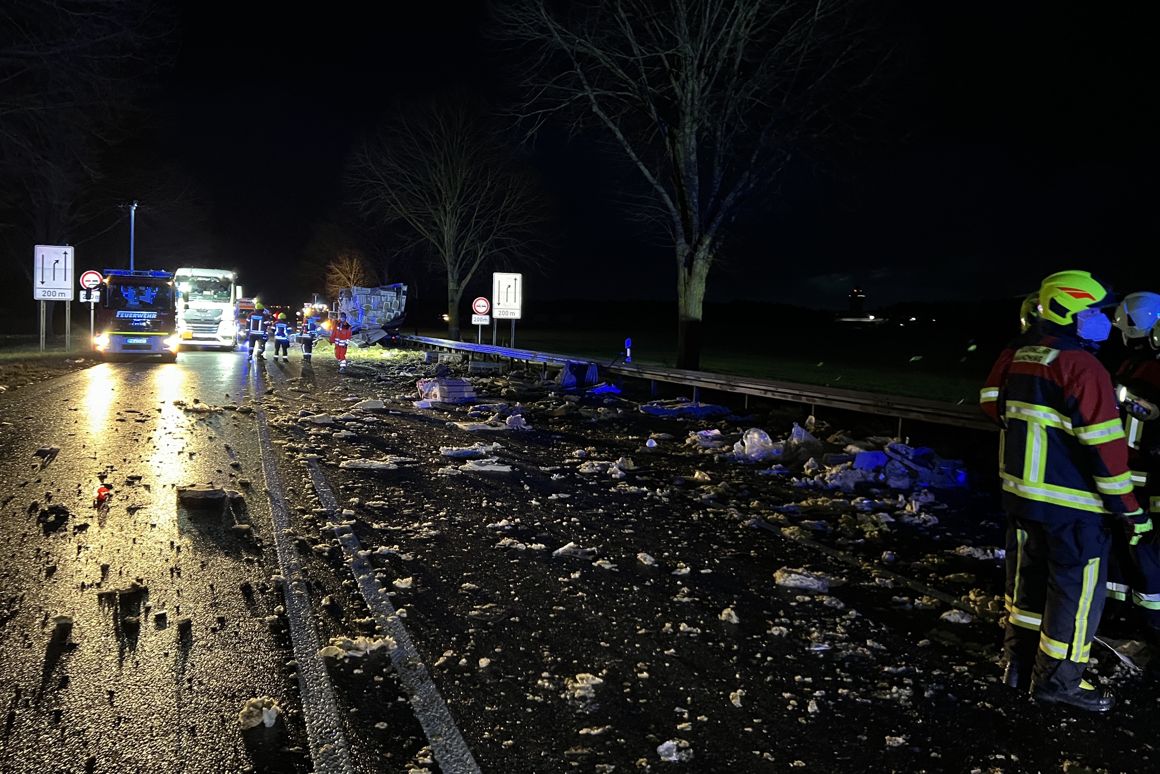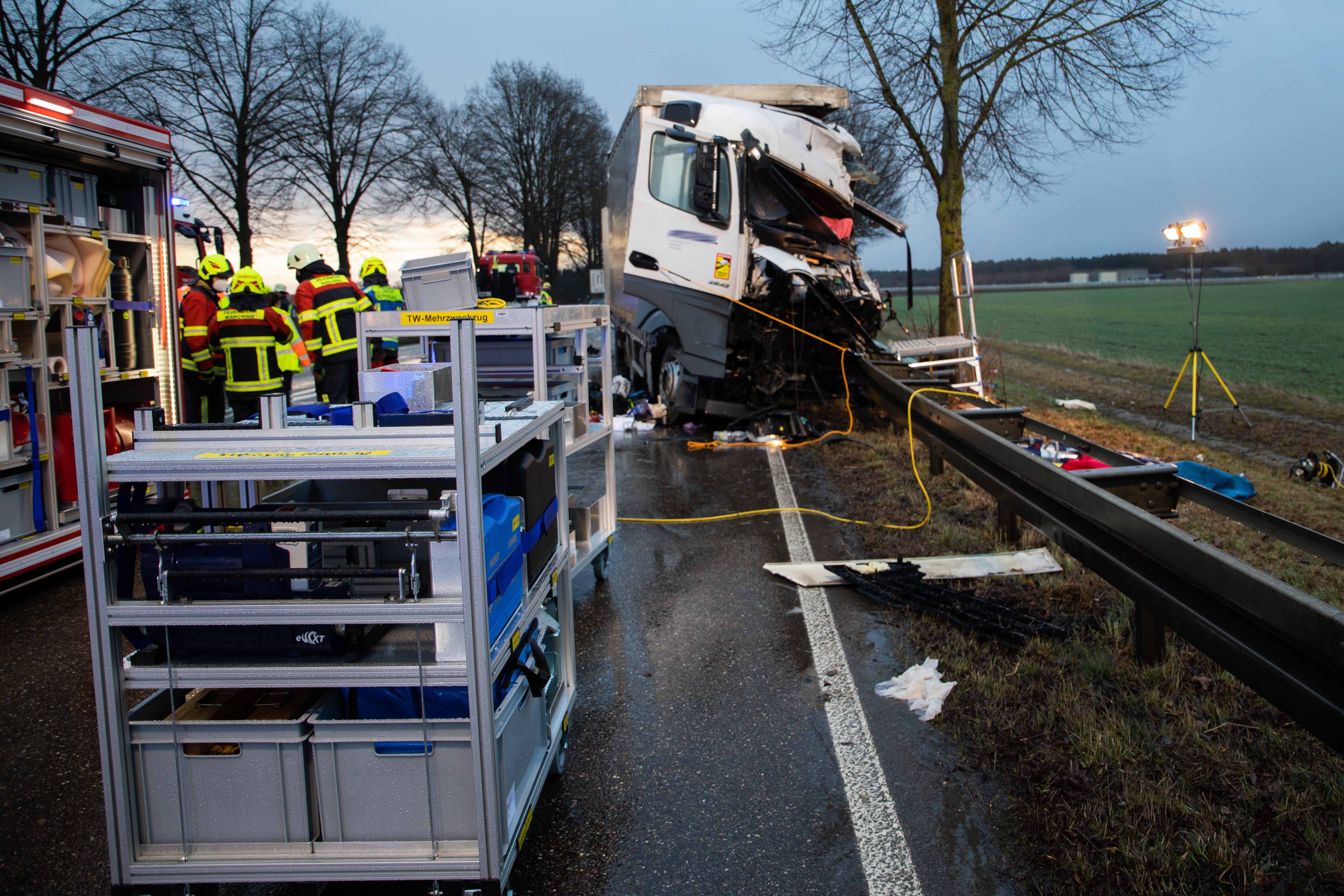 Die drei in das Unglück verwickelten Lastwagen mussten laut Polizei abgeschleppt werden. Der Sachschaden dürfte sich nach ersten Schätzungen der Verkehrspolizei-Beamten auf mehr als 200 000 Euro summieren. An die Unfallstelle waren zur Bergung der Fahrzeuge, zur Reinigung der Unfallstelle sowie zur Verkehrs-Lenkung neben den umliegenden Feuerwehren auch das Technische Hilfswerk (THW) aus Pfaffenhofen sowie das THW aus Freising gerufen worden.