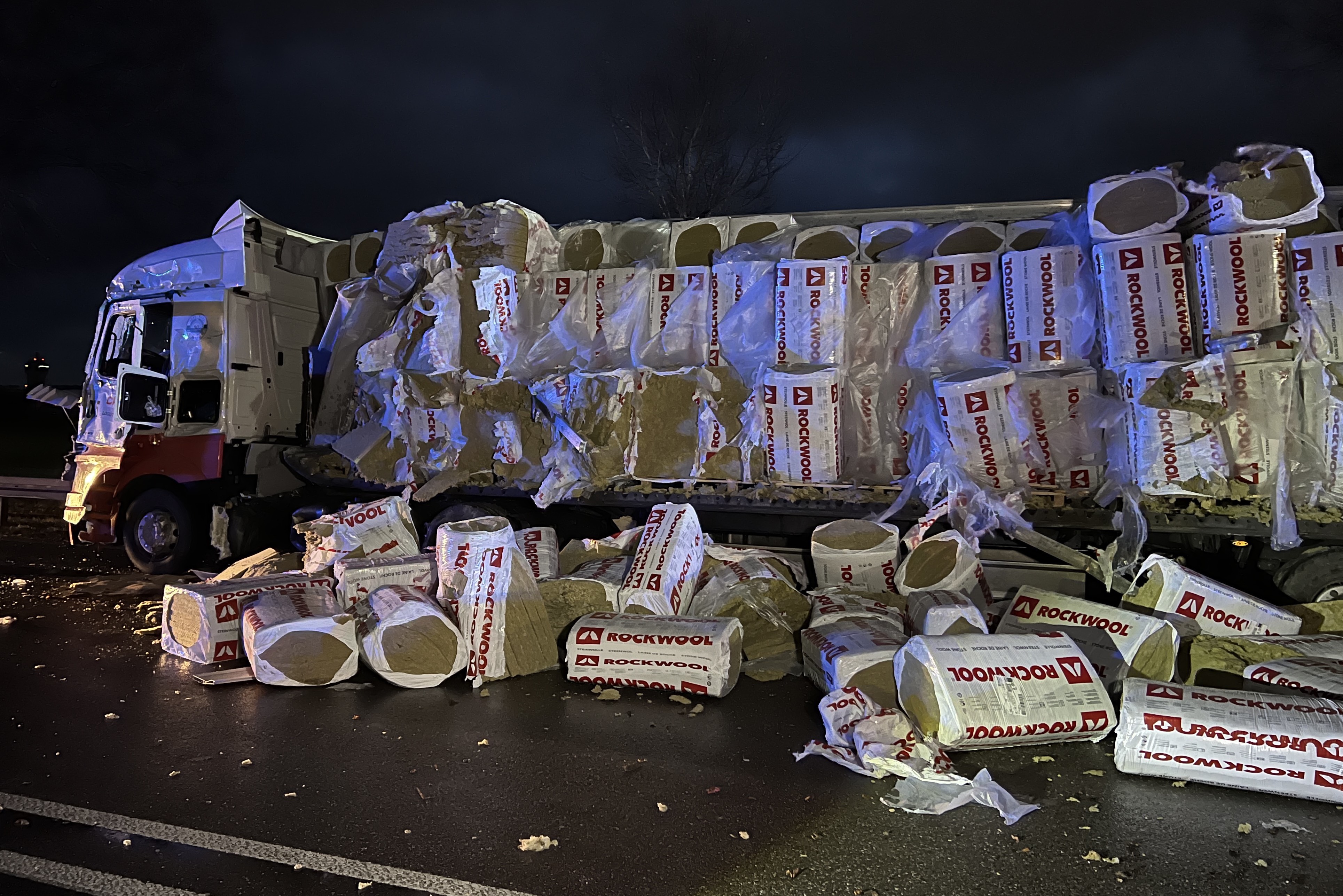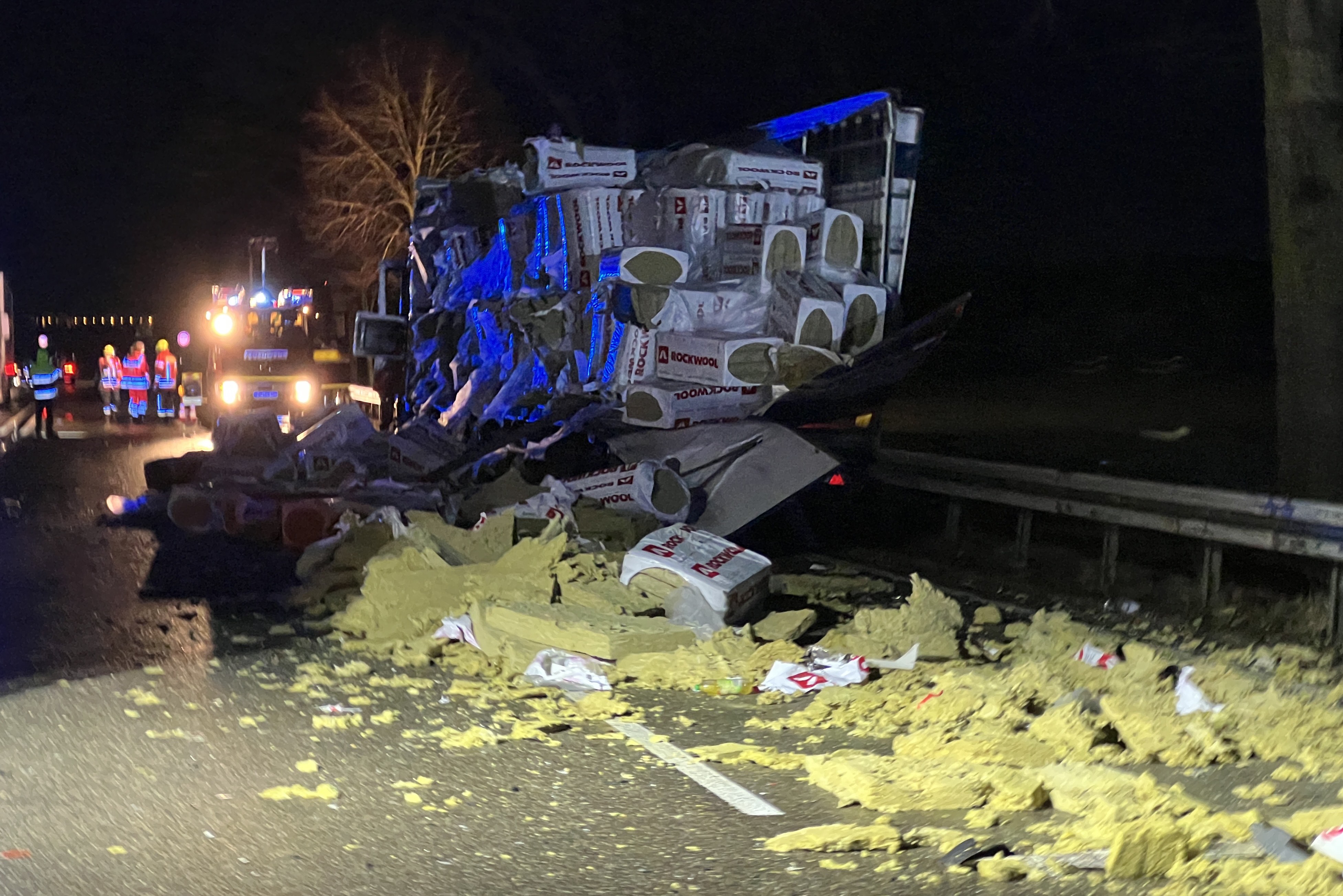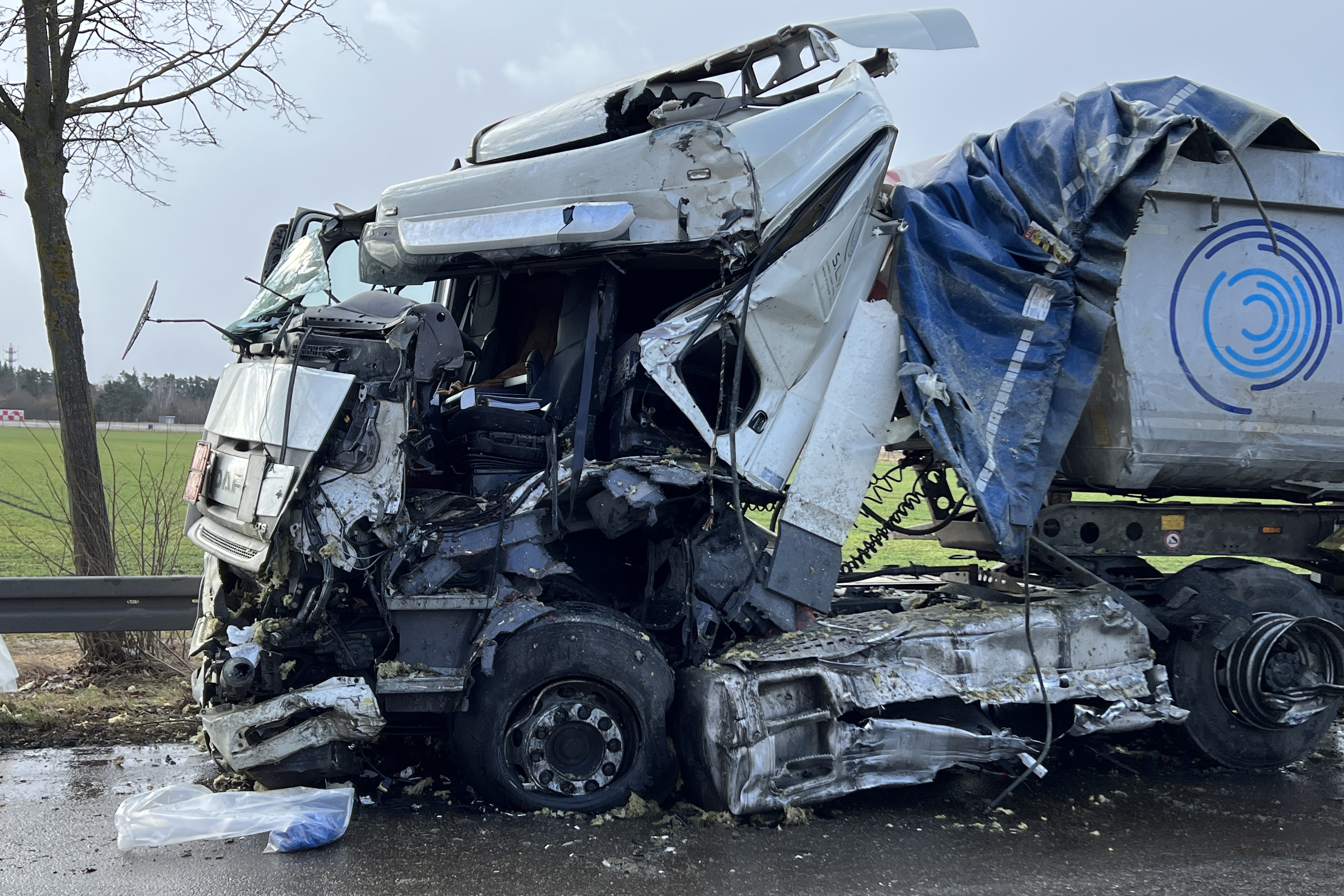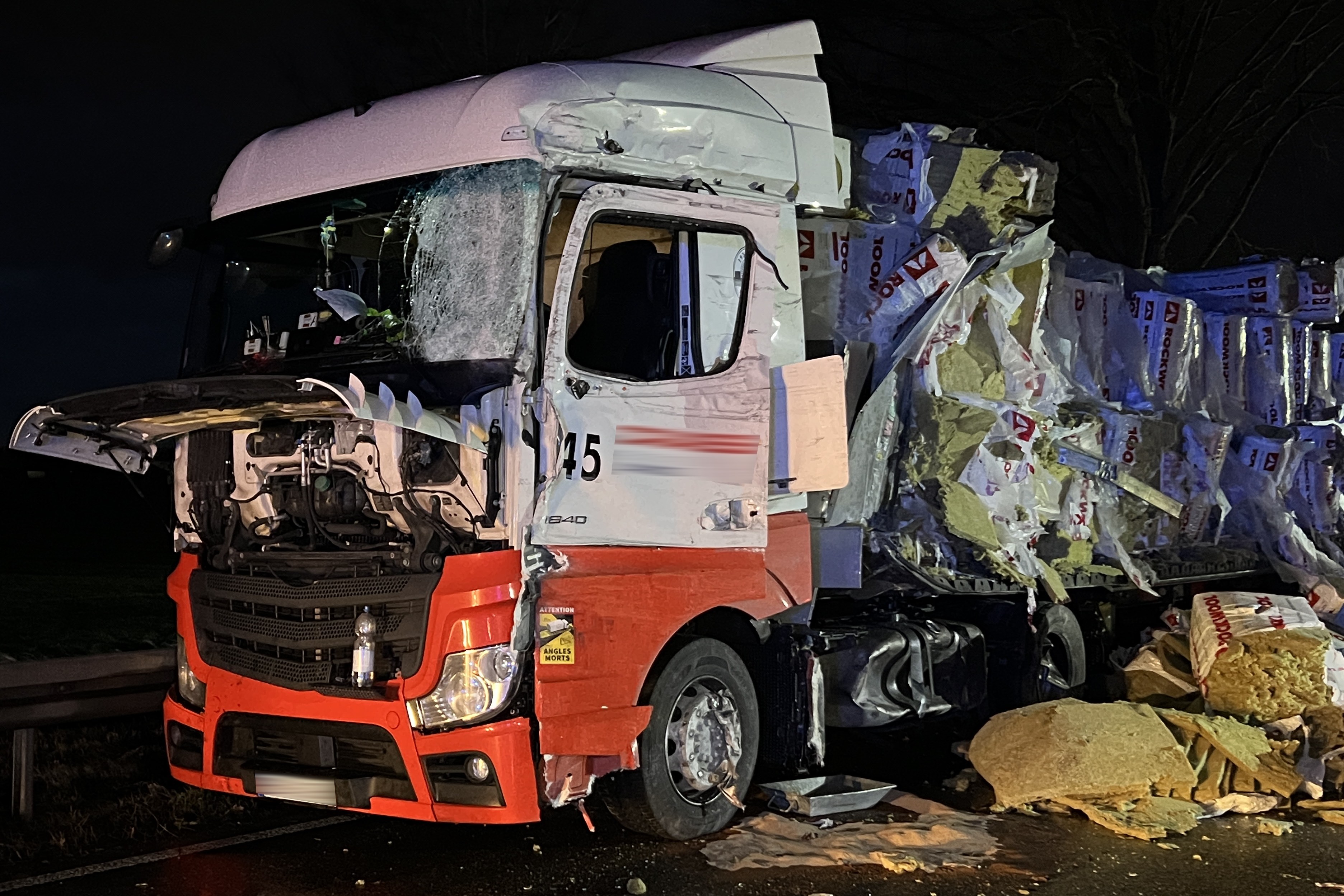 An dem von einer rumänischen Sattelzug-Maschine gezogenen entgegenkommenden Sattel-Auflieger, der gestreift worden war, "wurde bei dem Anstoß die gesamte linke Seite aufgerissen", heißt es im Bericht der Verkehrspolizei. Die Ladung, bestehend aus Dämm-Material, sei zum großen Teil auf der Fahrbahn verteilt worden. Der 46 Jahre alte Fahrer dieses Lkw, ein Rumäne, habe durch den Anstoß einen Glassplitter ins Auge bekommen. Er wurde nach der Erstversorgung vor Ort mit einem Rettungs-Hubschrauber in eine Spezial-Klinik nach Regensburg geflogen.