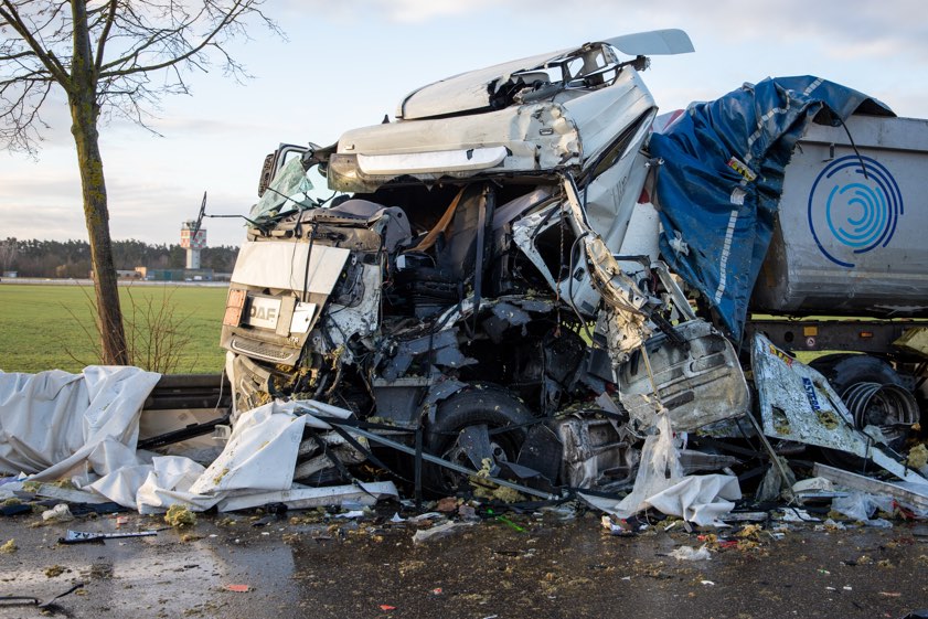 Wie die Verkehrspolizei-Inspektion aus Ingolstadt gegen Mittag berichtete, war der 55 Jahre alter Lastwagen-Fahrer aus der Ukraine mit seinem voll beladenen Lkw-Gespann auf der Bundesstraße B16 in Richtung Neuburg an der Donau unterwegs, als es auf Höhe des Manchinger Flugplatzes, kurz nach dem Ortsteil Lindach, zu dem folgenschweren Unglück kam: Unter Berufung auf die Angaben eines Zeugen heißt es, der Laster sei zunächst nach rechts ins Bankett geraten und habe daraufhin stark nach links gelenkt. Dabei sei er auf die Gegenspur geraten, wo er zunächst einen entgegenkommenden Sattelzug gestreift habe sowie anschließend frontal mit dem dahinter fahrenden Sattel-Kipper zusammengestoßen sei.