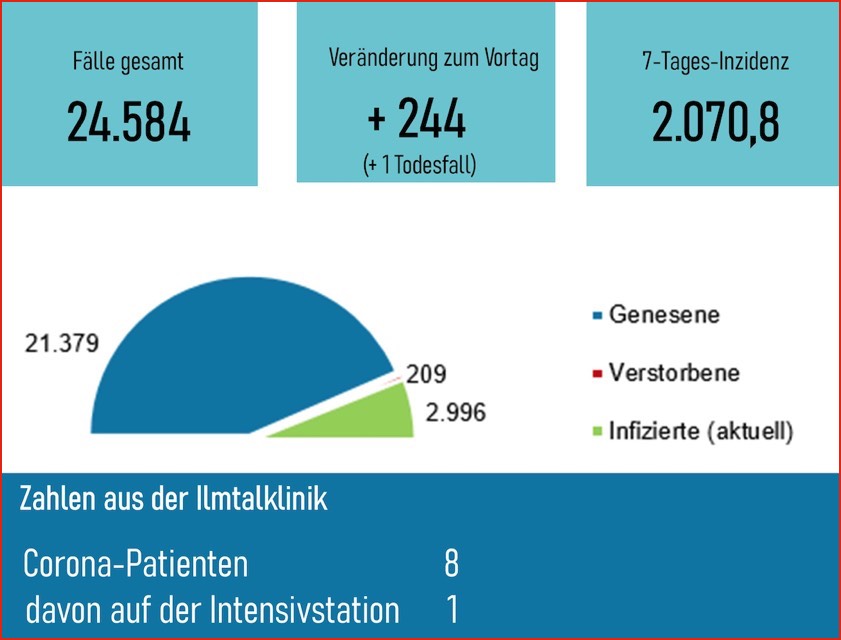 Bislang 24.584 Infektionen: 209 Betroffene gestorben, 2996 aktive Fälle, Sieben-Tage-Inzidenz: 2070,8. Die Lage und die aktuellen Regeln im Überblick.