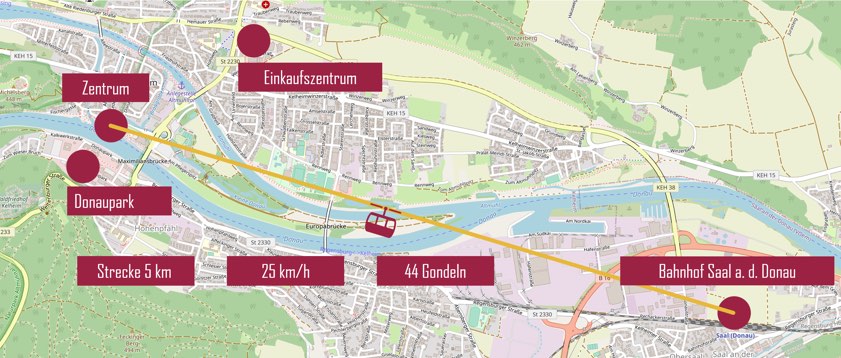 Mit der Realisierung einer barrierefreien Seilbahn-Verbindung zwischen Kelheim und dem zirka fünf Kilometer entfernt liegenden Bahnhof in Saal/Donau bietet sich laut Landratsamt "eine einmalige Chance, das bestehende öffentliche Verkehrs-System sinnvoll zu ergänzen, die bestehenden Verkehrswege zu entlasten und die Mobilität im ländlichen Raum nachhaltig zu stärken".