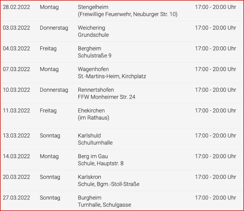 Wann das Angebot in welcher Gemeinde besteht. Außerdem: Infos zu Kinder-Impfungen in Schrobenhausen und Neuburg und zu den Impf-Zentren.