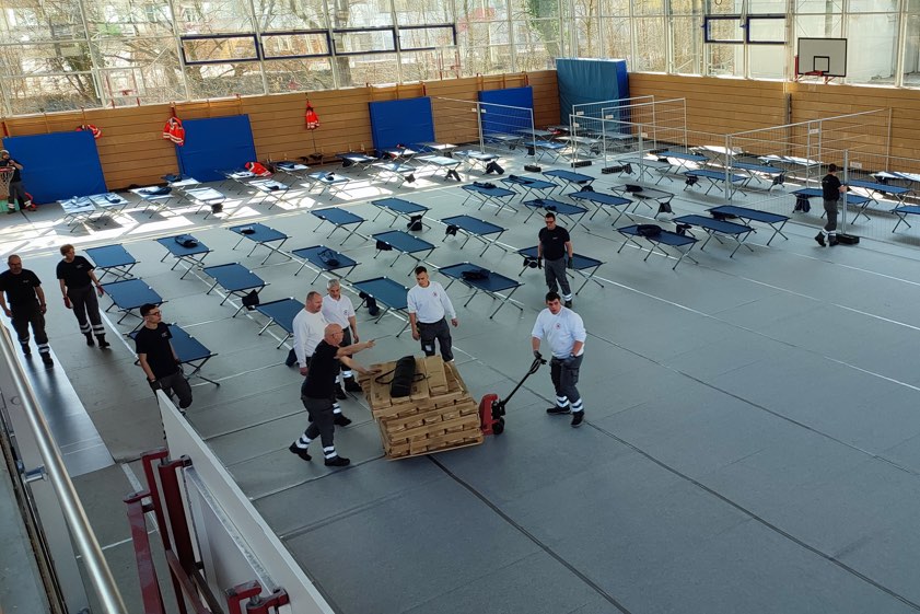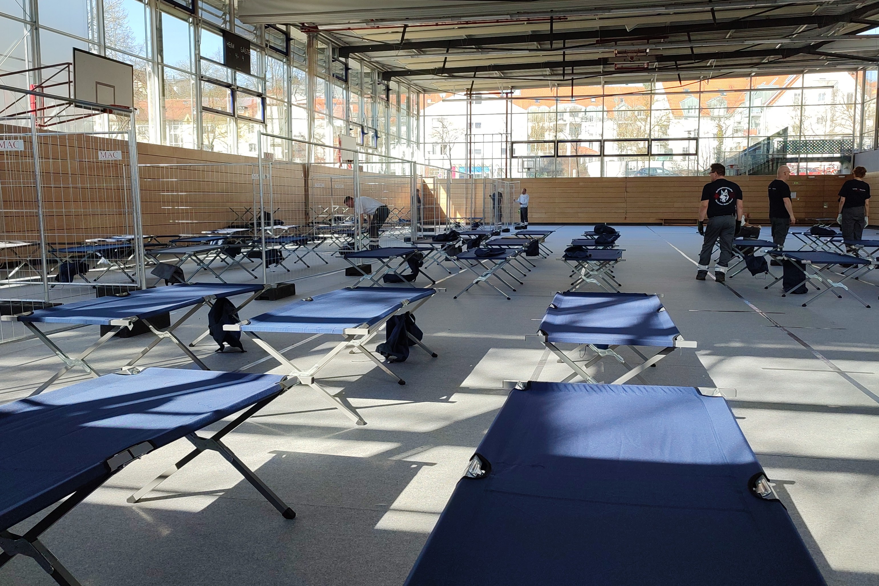 Nachdem von Seiten des Landkreises am Freitag entschieden worden war, zusätzlich zum Hotel Hallertau in Wolnzach und zum Hotel "Alea" in der Kreisstadt eine weitere Unterkunft für die Aufnahme von Kriegs-Flüchtlinge vorzubereiten, hatten sich die Ehrenamtlichen vom Roten Kreuz nach den Worten von Werner noch am Freitag an die Planung gemacht. "Sie besichtigten am Freitagabend die Halle und begannen am Samstagvormittag mit den Aufbau-Arbeiten", berichtet er. Dabei sei dem BRK eine schon vorab erstellte Planung zugute gekommen, "die man schon erstellt hatte und so quasi nur aus der Schublade holen musste".
