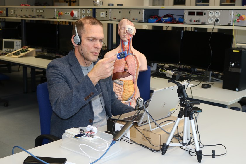 Schon im ersten Studienjahr entwickeln die Studierenden laut Hochschul-Anaben im "Praktikum to go" einen Pulsoximeter. Verknüpft werden müsse dazu Wissen aus der medizinischen Physiologie, wie zum Beispiel die Bedeutung der Sauerstoff-Sättigung im Blut, mit Fach-Fompetenzen aus der Physik – unter anderem zur Bestimmung der Wellenlängen beim Durchleuchten des Körpers –, aus der Elektro-Technik beim Bau der Mess-Sensoren bis hin zur Mathematik und Informations-Technik beim Auswerten der Signale und dem Programmieren des Geräts. "In einer gemeinsamen Lehrveranstaltung werden die fachlichen Hintergründe geklärt", heißt es aus der THI, "dann geht es für die Studierenden ans Experimentieren."