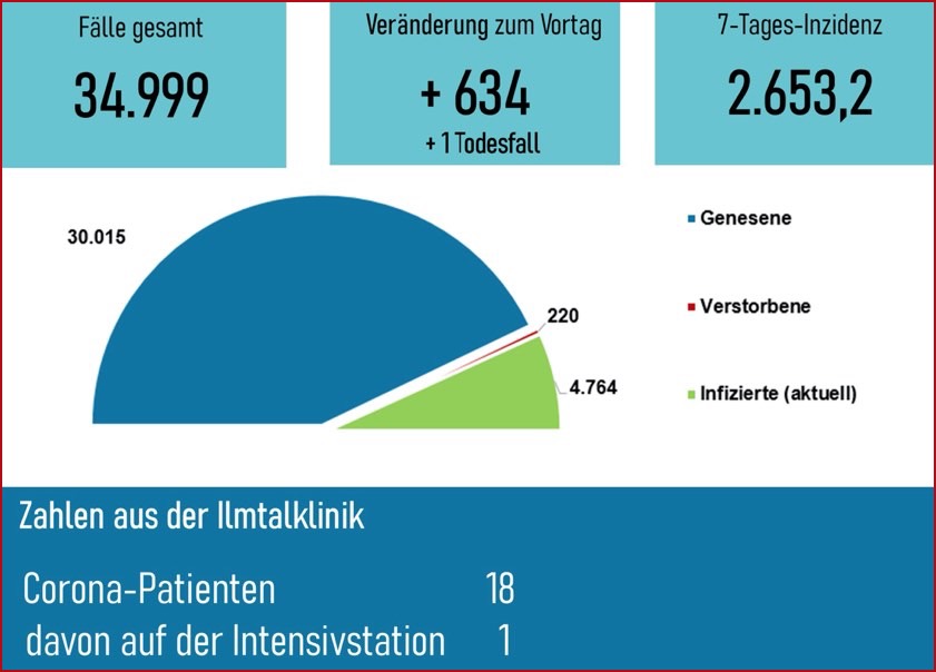 Bislang 34.999 Infektionen: 220 Betroffene gestorben, 4764 aktive Fälle, Sieben-Tage-Inzidenz: 2653,2. Die Lage und die aktuellen Regeln im Überblick.