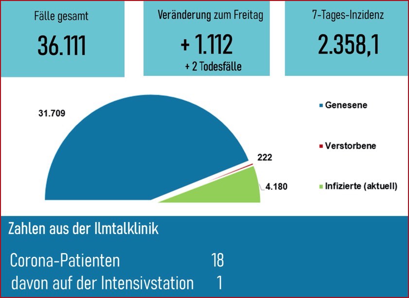 Bislang 36.111 Infektionen: 222 Betroffene gestorben, 4180 aktive Fälle, Sieben-Tage-Inzidenz: 2358,1. Die Lage und die aktuellen Regeln im Überblick.