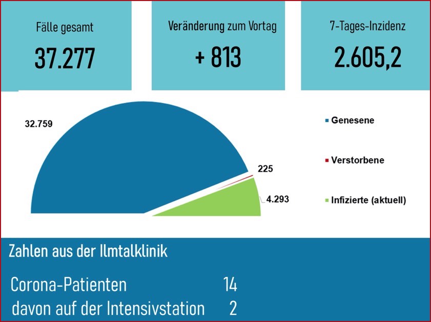 Bislang 37.277 Infektionen: 225 Betroffene gestorben, 4293 aktive Fälle, Sieben-Tage-Inzidenz: 2605,2. Die Lage und die aktuellen Regeln im Überblick.