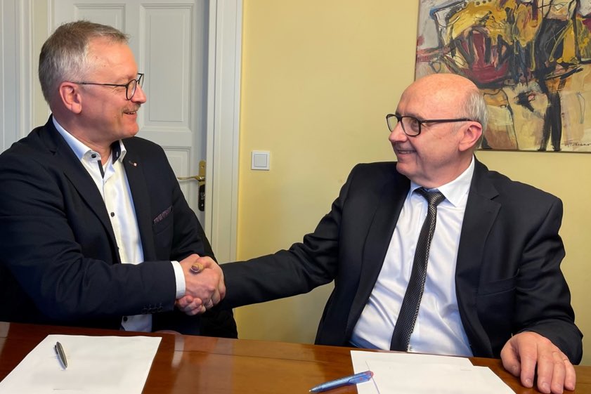 (ty) Die Kooperation des Kreises Kelheim mit dem Diözesan-Caritas-Verband Regensburg bezüglich des Krankenhauses in Kelheim ist jetzt auch notariell bestätigt. Wie das Landratsamt heute mitteilte, haben Landrat Martin Neumeyer (CSU) und Diözesan-Caritas-Direktor Michael Weißmann gestern die Verträge unterzeichnet. Die Caritas übernimmt, wie berichtet, 51 Prozent der Goldbergklinik-GmbH zum symbolischen Preis von einem Euro. Der Landkreis behält 49 Prozent und bleibt Eigentümer des Grundstücks sowie der Klinik-Gebäude. "Wirksam soll die Kooperation der beiden Träger im zweiten Quartal dieses Jahres werden", heißt es aus dem Landratsamt.