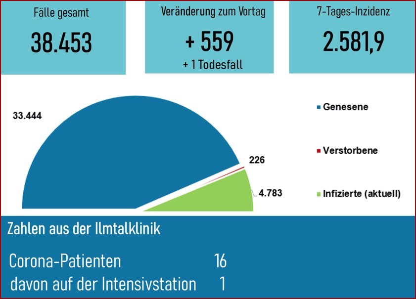 Bislang 38.453 Infektionen: 226 Betroffene gestorben, 4783 aktive Fälle, Sieben-Tage-Inzidenz: 2581,9. Die Lage und die aktuellen Regeln im Überblick.