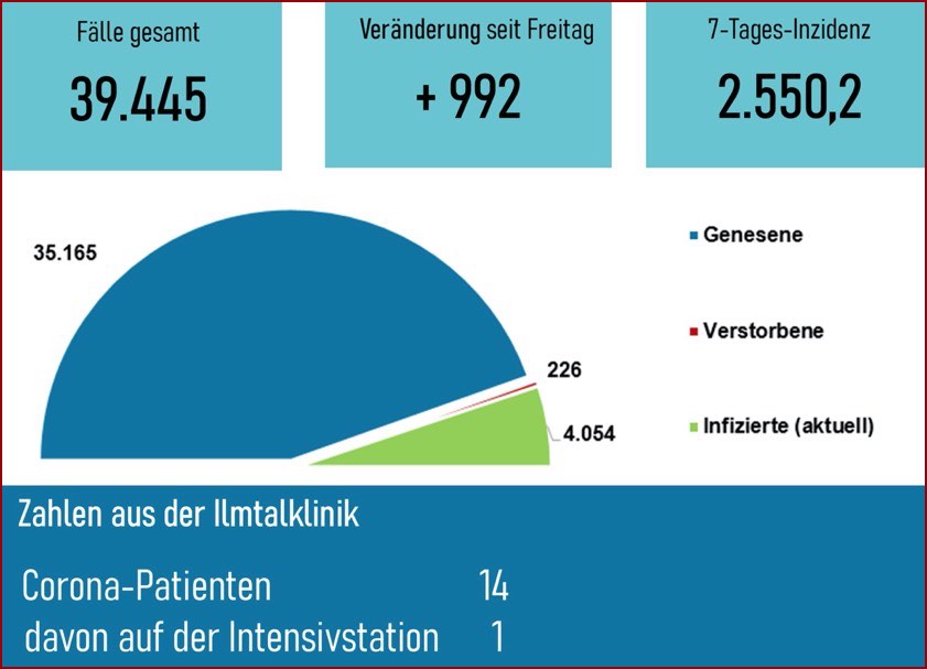 Bislang 39.445 Infektionen: 226 Betroffene gestorben, 4054 aktive Fälle, Sieben-Tage-Inzidenz: 2550,2. Die Lage und die aktuellen Regeln im Überblick.
