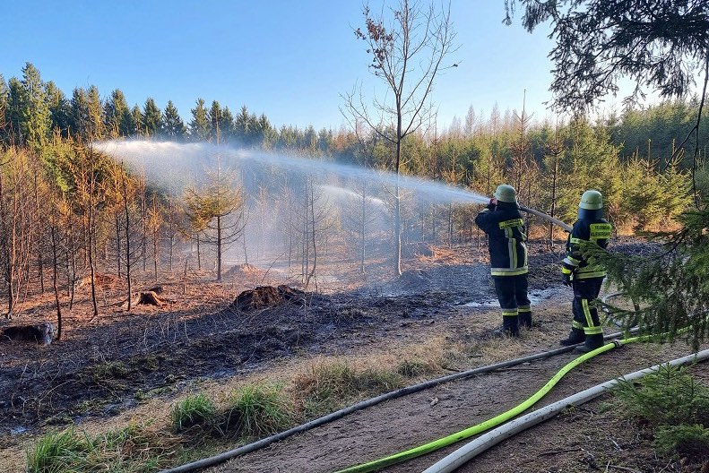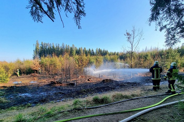 (ty) Nach einem Waldbrand, der am gestrigen Nachmittag bei Kleinberghofen im Gemeinde-Bereich von Erdweg (Landkreis Dachau) ausgebrochen war, hat die Kripo die Ermittlungen übernommen, bittet um Hinweise und mahnt zu erhöhter Vorsicht. Nach derzeitigem Stand gehen die Kriminalbeamten von fahrlässiger Brandstiftung aus, teilte das Polizeipräsidium Oberbayern-Nord heute mit. Gegen 14.45 Uhr hatte ein Zeuge auf dem Weg von Kleinberghofen in Richtung Neusreuth das Feuer in den Jungbäumen entdeckt und Alarm geschlagen. Als die Einsatzkräfte eintrafen, sei niemand mehr vor Ort gewesen. Eine Fläche von zirka 2500 Quadratmetern mit Bäumen und Gras sei zum Raub der Flammen geworden, ehe die Floriansjünger den Brand eindämmen konnten.