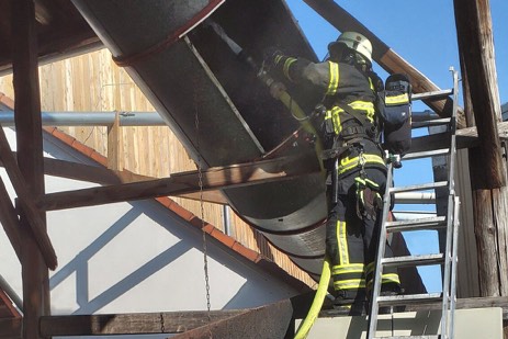 "Umgehend wurde, mit mehreren Rohren, ein Innenangriff in den betroffenen Teil des Dachstuhls vorgenommen, welcher rasch Wirkung zeigte", heißt es von der Pfaffenhofener Feuerwehr. "Um eine Ausbreitung auf andere Gebäudeteile zu verhindern, wurden die Förder- und Lüftungs-Technik in dem Bereich außer Betrieb genommen und die angrenzenden Gebäudeteile kontrolliert." Im Laufe der Lösch-Maßnahmen habe auch die Dachhaut des Gebäudes von der Drehleiter aus geöffnet werden müssen, um Glutnester abzulöschen. "Aufgrund der Bauform der Staubkammer und der Zugänglichkeit zum Objekt wurde eine größere Anzahl an Atemschutz-Trägern eingesetzt."