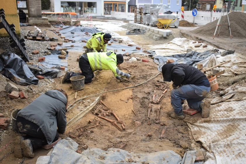 Für das Team um Grabungs-Leiter Tobias Riegg und Anthropologin Vera Planert habe es bei zum Teil frostigen Bedingungen viel zu tun gegeben. "Denn dort, wo der dicht belegte und hoch-komplexe ehemalige Friedhof am Fuße der Laurentiuskirche nicht vollständig konservatorisch überdeckt werden konnte, mussten die entsprechenden Bereiche händisch auf das erforderliche Niveau abgetragen werden", berichten die Experten. Reste von mehr als 100 Bestattungen seien anthropologisch und bestattungs-archäologisch fachgerecht freipräpariert und dokumentiert worden. "Dabei war stets darauf zu achten, den wissenschaftlichen Informations-Verlust zu minimieren und die Effizienz der Grabung zu optimieren", heißt es weiter.