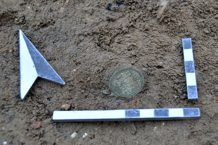 Zudem seien während der archäologischen Maßnahmen auch Reste der mittelalterlichen und frühneuzeitlichen Bebauung dokumentiert worden – wenngleich deren Erhaltungs-Zustand aufgrund der Bauarbeiten der vergangenen Jahrzehnte lokal stark differiert habe. "Dazu zählten neben Resten der Friedhofs-Mauer auch gemauerte, teils unterkellerte kirchliche Marktbuden der Frühneuzeit, eine Vorratsgrube des späten Früh- oder Hochmittelalters und ein vermutlich mittelalterlicher, rundlicher Ofen sowie ein Brunnen der späten Frühneuzeit", berichten die Fachleute. Zu den insgesamt 232 bearbeiteten Befunden zählten ferner vereinzelte Tierknochen, Keramik-Fragmente und ein Pfennig aus dem Jahre 1627.