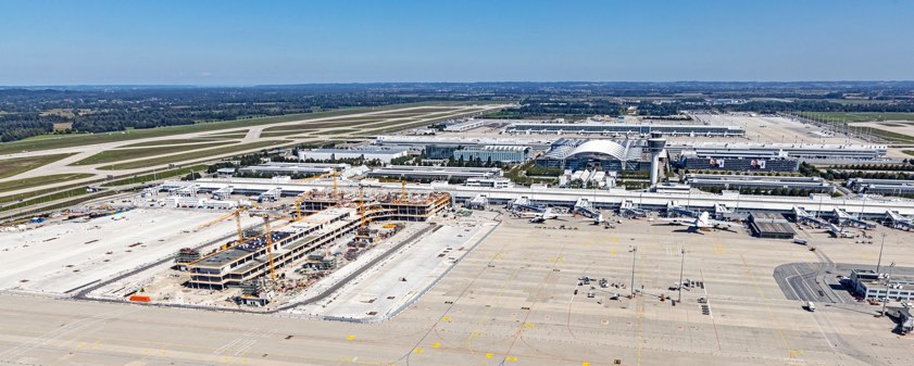 (ty) Drei Jahre nach Beginn der Bauarbeiten für den neuen Flugsteig am Terminal 1 des Münchner Airports sind die Rohbau-Arbeiten weitgehend abgeschlossen. "Der Zeitplan für die weiteren Baumaßnahmen bis zur Fertigstellung der neuen Terminal-Bereiche wird vor dem Hintergrund der massiven Auswirkungen der Covid19-Pandemie auf den weltweiten Luftverkehr und der daraus resultierenden Verkehrs-Rückgänge am Münchner Flughafen gestreckt", teilte die Flughafen-Gesellschaft (FMG) jetzt mit. "Eine Inbetriebnahme des neuen Flugsteigs wird nach jetzigem Stand frühestens Ende 2025 erfolgen." Mit der Verlängerung der Bauzeit und den enormen Kostensteigerungen in der Bauwirtschaft sei auch eine Erhöhung des Investitions-Volumens verbunden. Nach aktuellen Schätzungen werde die FMG insgesamt über 600 Millionen Euro für das Projekt aufwenden.