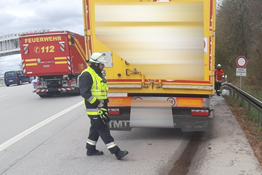 Der Lkw kollidierte mit der Leitplanke, die Tanks für Hydraulik-Öl und Kraftstoff wurden beschädigt, Betriebsstoffe gelangten ins Erdreich.