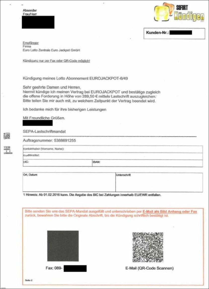 Auch das Polizeipräsidium Niederbayern warnt vor den mutmaßlich unberechtigten Forderungen sowie in diesem Zusammenhang auch davor, das beigefügte Kündigungs-Schreiben und das Sepa-Lastschrift-Mandat mit den Konto-Informationen an die angegebene Fax-Nummer beziehungsweise mittel QR-Code zu übersenden. Zugleich hat das niederbayerische Polizeipräsidium auch Fotos von einem solchen angeblichen Mahn-Schreiben veröffentlicht, die wir hier veröffentlichen. Das Polizeipräsidium Oberbayern-Nord rät in einer heute herausgegebenen Presse-Mitteilung den Empfängern eines solchen Schreibens zu nachfolgendem Vorgehen: