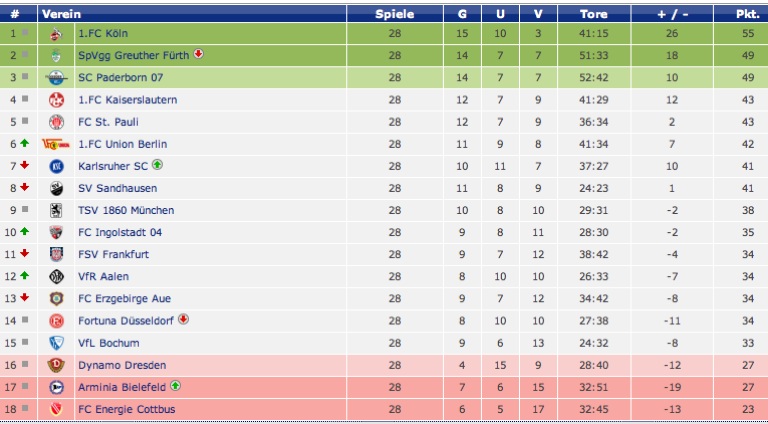 Tabellenführer Köln (55 Punkte) empfängt den Vorletzten Bielefeld (27 Punkte). Auch das ist gut für den FC Ingolstadt, denn sollten die Kölner Erstligisten in spe vor heimischem Publikum die Erwartungen erfüllen und gewinnen, dann würde es für die Bielefelder zappenduster – die haben jetzt schon sechs Punkte Rückstand auf einen Nicht-Abstiegsplatz. Was freilich dem FC in die Karten spielen würde.