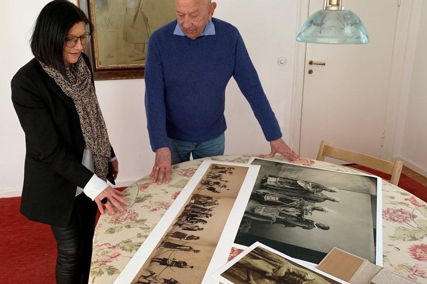 Lenbach-Enkel Reinhold Neven DuMont und Kulturamts-Leiterin Claudia Freitag-Mair beim Sichten der Fotografien für die Ausstellung. Foto: Stadt Schrobenhausen