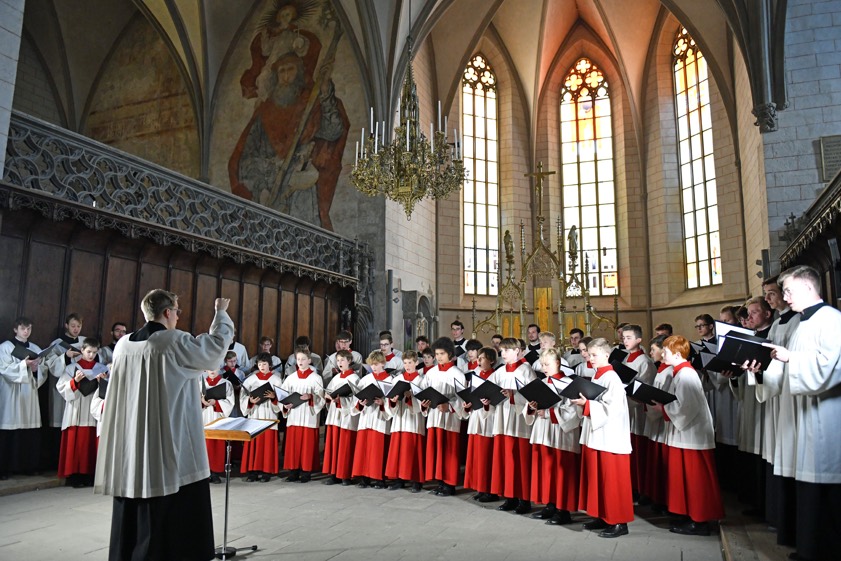 Aufgrund der Aufbau-Arbeiten des Bayerischen Rundfunks für die Live-Übertragung der Osternacht an diesem Samstag um 22 Uhr musste die traditionelle Anbetung beim Heiligen Grab im Dom heuer entfallen. Musikalisch gestaltet wurde die Karfreitags-Liturgie vom Kammerchor der Domsingknaben sowie dem Domchor unter der Leitung von Domkapellmeister Stefan Steinemann. Neben der Johannes-Passion von Hermann Schroeder, die der Domchor bereicherte, sangen die Domsingknaben verschiedene Passions-Motetten, unter anderem das "Miserere" von Gregorio Allegri (1582-1652).