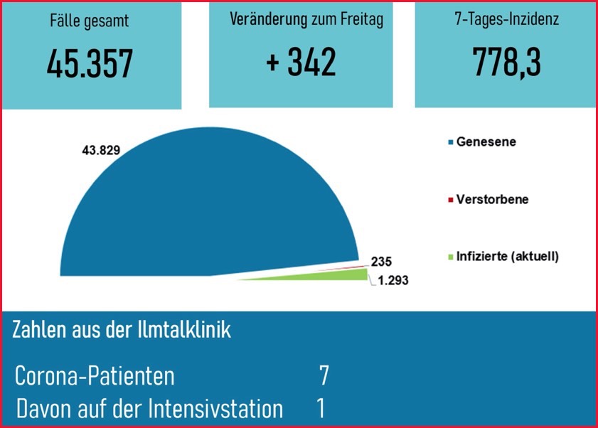 Bislang 45.357 Infektionen: 235 Betroffene gestorben, 1293 aktive Fälle, Sieben-Tage-Inzidenz: 778,3. Die Lage und die aktuellen Regeln im Überblick.