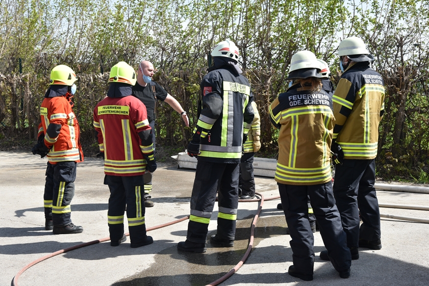Dabei kam es auch zu einer Rauch-Durchzündung, worunter man das plötzliche Durchzünden und Abbrennen von Pyrolysegas versteht. "Diese Durchzündung wird hier nachgestellt", erläuterte Benedikt Stuber, der die Übung als Kreisbrandinspektor beobachtete. Dieser Festbrennstoff-Übungs-Container war zuletzt im Jahre 2006 im Landkreis Pfaffenhofen im Einsatz. Die Freiwillige Feuerwehr von Scheyern um ihren Kommandanten Tobias Zull hatte es organisiert, dass diese Trainings-Möglichkeit nun hier wieder angeboten werden konnte. Wir hatten im Vorfeld berichtet: Besondere Trainings-Möglichkeit für Feuerwehrleute im Kreis Pfaffenhofen