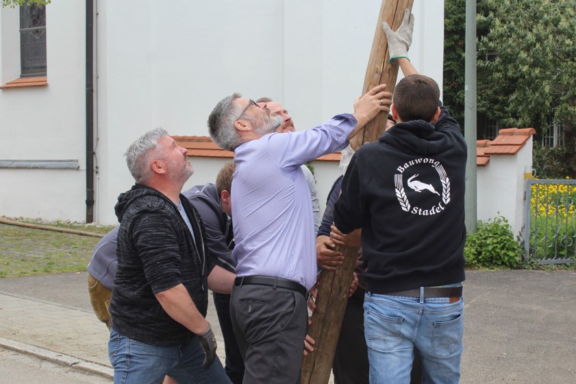 Heuer aber konnte Haindl nun seine erste Maibaum-Tour als Bürgermeister machen. Denn nach der pandemie-bedingten Zwangspause durften wieder Maibäume aufgestellt und die dazugehörigen Feierlichkeiten abgehalten werden. Bei seiner Premiere hatte Haindl gleich mehrere Stationen auf seinem Fahrplan. Im Gemeinde-Gebiet wurden insgesamt fünf Maibäume in die Vertikale gehievt: in Hohenwart sowie in den Ortsteilen Thierham, Deimhausen, Koppenbach und Weichenried. Haindl musste als "Neuling" übrigens auch gleich selbst mit anpacken.